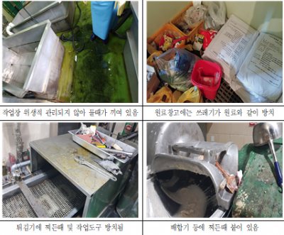 2016년과 2017년에 각각 자가품질검사를 하지 않았거나 영업정지 기간 중에 영업을 하다 적발되었던 충북 청주시 소재 OO업체는 고춧가루·들기름 제품을 제조하면서 원료수불 관계서류와 생산 작업에 관한 서류를 작성하지 않았으며 또한 작업장 안에 있는 분쇄기, 혼합탱크, 건조탱크 등 제조시설 외부에 찌든 먼지와 기름때를 방치하고 청소하지 않는 등 위생적 취급기준을 위반해 적발됐다.