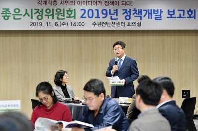 [충청뉴스큐] 수원시 좋은시정위원회는 6일 수원컨벤션센터 회의실에서 ‘2019년 정책개발 보고회’를 열고 ‘4차산업 시대, 민원경향 분석을 통한 정책개발 모니터링’ 등 7개 정책개발과제를 도입과제로 선정했다.