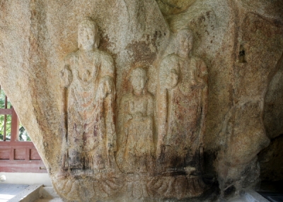 ‘태안 동문리 마애삼존불입상’은 백제시대의 가장 오래된 마애불로 가운데 보살상 중심으로 좌·우측에 여래상이 배치된 전 세계에서 유일한 형식의 삼존불 형태를 지니고 있으며 땅속에 묻혀있었던 백제시대의 연화대좌가 드러나면서 2004년 보물에서 국보 제307호로 승격됐다.