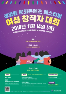 [충청뉴스큐] 서울시여성가족재단은 오는 14일 오후 7시부터 서울여성플라자 2층 성평등도서관 ‘여기’ 등에서 ‘성평등 굿즈 디자인 공모전’ 수상작과 성평등 문화 창작자들을 만나는 ‘성평등 문화콘텐츠 페스티벌-여성창작자 대회’를 개최한다.