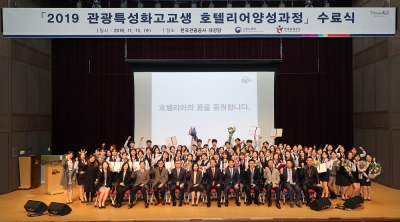 [충청뉴스큐] 한국관광공사는 ‘2019 관광특성화고교생 호텔리어 양성과정’ 수료식을 13일 공사 대강당에서 개최했다. 총 69명의 교육생들은 8월 12일부터 약 3개월의 실무 중심 교육과정을 수료하고 예비 호텔리어로서 역량을 갖추게 됐다.