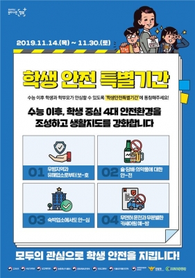 [충청뉴스큐] 문화체육관광부는 교육부와 전국시도교육감협의회가 지정한 ‘학생 안전 특별기간’과 연계해 수능 이후 국내 여행에 나서는 청소년들의 안전을 위해 야영장, 관광펜션 등 소규모 관광숙박시설 이용 시 유의사항을 발표했다.