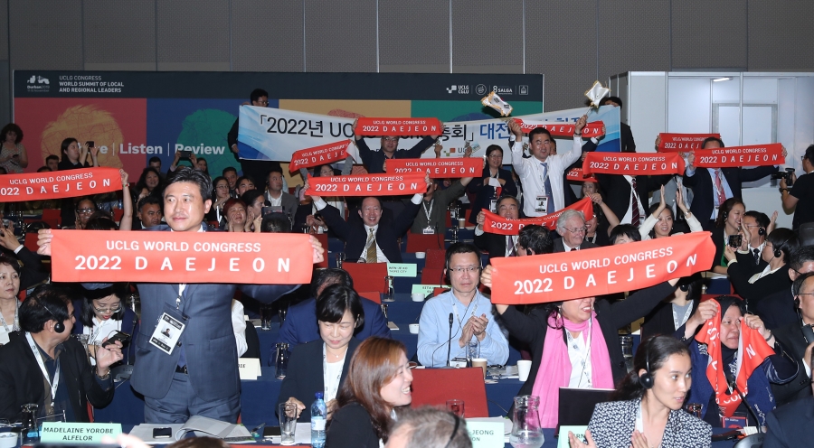 1993년 대전 엑스포 이후 최대 규모의 국제행사가 오는 2022년 대전에서 열리게 됐다. 허태정 대전시장은 15일 오후(현지시간) 남아공 더반에서 열린‘2019 제6회 세계지방 정부연합(UCLG) 총회’에서 2022년 세계지방정부연합 총회 유치에 성공했다. 세계지방정부연합(UCLG) 총회는 지방정부간 상호협력과 공동번영을 위해 전 세계 140여 개 국 1,000여개 도시정상 등이 모여 개막행사와 본회의, 워크숍, 타운홀미팅, 전시·박람회 등을 개최하는 대규모 국제행사다. 대전시는 세계지방정부연합 총회 유치를 위해 지난 2월부터 시도지사협의회 및 외교부를 비롯한 중앙부처, 세계지방정부연합 아태지부와 협력해 선제적으로 국내․외 유치활동을 벌여왔다. 대전시는 남미, 아시아, 아프리카에서 유럽까지 대표단을 파견해 공격적인 유치 활동을 펼쳐왔고, 더반 현지에서도 세계이사회 회원들에게 지지를 요청하는 등 마지막까지 최선을 다한 결과 차기 개최도시로 최종 확정됐다. 실제로 세계지방정부연합 주요결정권자인 대륙지부 사무총장들의 전폭적인 지지를 이끌어낸 대전시는 마지막까지 유치 행보를 이어갔으며, 외교부도 세계이사회 회원도시들을 대상으로 유치활동에 힘을 보탰다. 허태정 대전시장은“이번 세계 총회 유치로 5,000여명이 대전을 방문하고, 약 384억 원의 생산유발효과와 약 76억 원의 소득 유발효과 등 상당한 경제적 파급효과가 기대된다”며“대전방문의 해(2019~2021) 이후 사이언스콤플렉스 및 국제전시컨벤션센터 개관 시점에 맞춰 대규모 회의를 개최하게 돼 관광거점도시로 도약하는 원년이 될 것”이라고 기대감을 나타냈다. 한편,‘2022 제7회 세계지방정부연합 총회’는 2022년 10월 중 4박 5일 일정으로 대전컨벤션센터(DCC) 및 대전국제전시컨벤션센터(DICC) 일원에서 개최될 예정이다. 대전시는 기획재정부와 협의해 국제행사로 승인 받아 국비를 확보하고 정부 공인 국제행사로 개최해 행사의 규모와 품격을 높여 나갈 계획이다. 특히, 세계과학도시연합(WTA) 및 사이언스페스티벌 등 주요 행사 연계와 다양한 문화·관광프로그램을 마련해 마이스(MICE)관광객 유치에도 박차를 가할 예정이다.