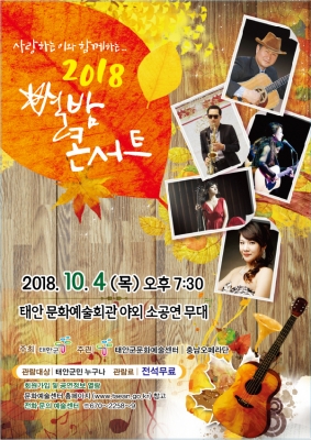 [충청뉴스큐] 태안군이 오는 4일 저녁 7시 30분부터 태안군 문화예술회관 야외무대에서 ‘2018 별밤콘서트’를 연다.