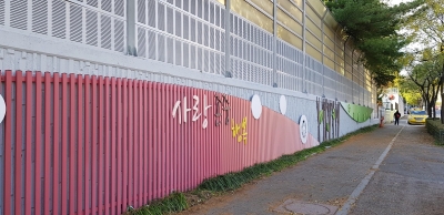 ‘관저중 삼거리 일대 담장 정비사업’은 2019년도 시민제안 공모사업에 선정된 사업으로 관저중 일대의 담장 벽화가 노후되는 등 미관을 저해하는 문제를 해결하기 위해 추진됐다.