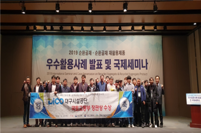 [충청뉴스큐] 대구시설공단은 지난 21일 환경부·국토교통부 주최, 한국건설자원협회 주관의 ‘2019 순환골재·순환골재 재활용제품 우수사례’에서 국토교통부장관상을 수상했다.