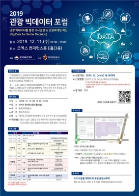 [충청뉴스큐] 문화체육관광부는 한국관광공사와 함께 오는 12월 11일 코엑스 콘퍼런스룸 이홀에서 ‘2019 관광 빅데이터 포럼’을 개최한다.