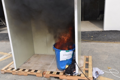 특히 샌드위치 패널로 된 벽면 인근에서 화재가 발생할 경우 급속도로 연소 확대되는 상황을 재현실험을 통해 확인하고 시민들의 주의를 당부했다.
