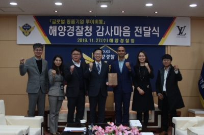 [충청뉴스큐] 위조상품 밀수 단속 분야에서 활약 중인 해양경찰청이 프랑스 명품브랜드 그룹 루이비통으로부터 감사의 마음을 전달받았다.