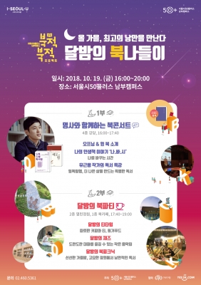 ‘달밤의 북나들이’ 행사는 오는 19일 서울시50플러스 남부캠퍼스에서 오후 4시부터 진행되며 1,2부로 나뉘어 북콘서트와 북파티 형식으로 꾸며진다.