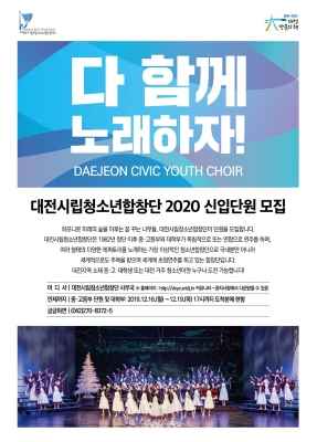 [충청뉴스큐] 대전시립청소년합창단이 2020년부터 함께 노래할 성실하고 재능 있는 신입단원을 모집한다.