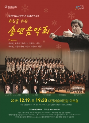대전시 관계자는 “2019년 한해를 돌아보며 열심히 달려온 시민에게 대전시향의 음악을 통해 위로와 격려, 그리고 희망의 메시지를 드리며 연말을 의미 있게 마무리 하는 감동의 무대가 될 것”이라고 말했다.