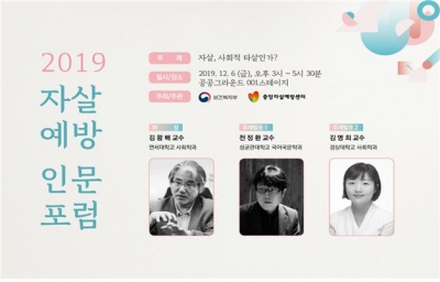 [충청뉴스큐] 보건복지부와 중앙자살예방센터는 6일 서울 종로구 공공그라운드에서 ‘2019 자살예방 인문공개토론회’를 개최했다.
