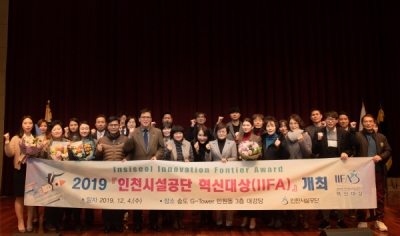 [충청뉴스큐]인천시설공단은 지난 4일 송도 G타워 대강당에서 박남춘 인천광역시장을 비롯한 공단 시민위원 및 임·직원 등 300여명이 참석한 가운데‘2019 인천시설공단 혁신대상’시상식을 개최했다고 밝혔다.