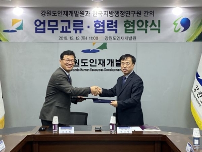 [충청뉴스큐] 강원도인재개발원과 한국지방행정연구원은 12일 인재개발원에서 지방자치 발전을 선도하는 우수한 지역인재 양성에 상호 협력하는 내용을 담은 업무협약을 체결했다.