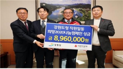 [충청뉴스큐] 강원 도청 직원 일동은 지난 13일 ‘희망 2020 나눔 캠페인’ 성금 8,960만원을 강원도사회복지공동모금회에 기탁했다.