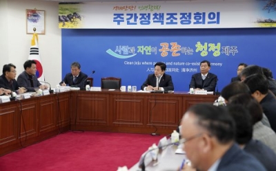 또한 감귤 가격하락과 관련해 “감귤의 근본적인 경쟁력이나 가격회복을 위한 원지정비나 정책에 대한 부분을 적극 홍보하고 위기의식과 도민 인식을 다지는 계기가 되길 바란다”며 농심에 각별한 관심을 기울일 것도 당부했다.