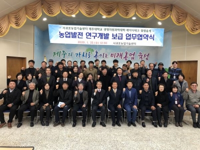 [충청뉴스큐] 제주특별자치도농업기술원 서귀포농업기술센터는 22일 농업인교육관에서 제주대학교 생명자원과학대학과 제이디테크 팜랩올레와 함께 제주농업 발전 연구개발 보급을 위한 산학연 업무협약을 체결한다.