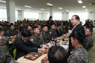 문 의장은 영내 식당에서 장병들과 오찬을 함께하며 "여러분들의 뒤에는 5천만 국민과 대한민국이 있다 대한민국을 뒷받침한다는 생각으로 하루하루 잘 견뎌주길 바란다”고 당부한 뒤, 부대 측에 위문품으로 건조기 10대를 전달했다.