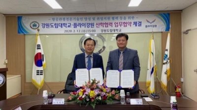 [충청뉴스큐] 강원도립대학교와 플라이강원은 12일 대학본부에서 항공관광전문기술인 양성과 산학협력 활성화를 위한 업무협약을 체결하고 우수인재양성과 취업지원 활동, 지역사회기여활동 공동 추진 등을 협력해 나가기로 했다.