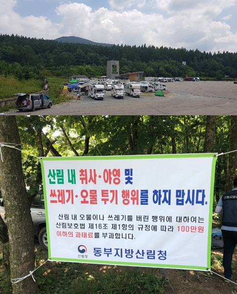 한편, 동부지방산림청은 여름철 산림 내 불법행위 합동 단속 기간을 지난 7월 27일 ∼ 오는 8월 5일까지 정하여 집중 단속을 실시하고 있으며, 지난 7월 27일 ∼ 7월 30일 캠페인 등을 활용하여 휴양객이 많은 계곡 등에서 불법행위에 대한 집중계도활동을 실시했다.