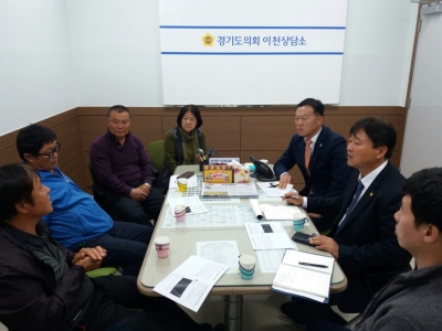 [충청뉴스큐] 경기도의회 김인영 의원, 성수석 의원은 지난 18일 경기도의회 이천상담소에서 장호원읍 송산리 주민들과 한국농어촌공사에서 추진중인 장호원읍 용풍저수지 수상태양광 설치사업에 대해 의견을 청취하는 자리를 가졌다.