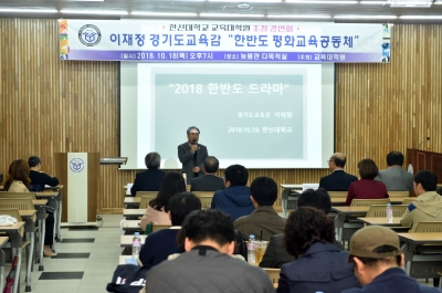 [충청뉴스큐] 이재정 경기도교육감은 지난 18일 한신대학교 교육대학원에서 ‘한반도 평화교육공동체’를 주제로 초청 강연회 특강을 진행하고 참석자들과 대화의 시간을 가졌다.