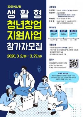 [충청뉴스큐] 강원창조경제혁신센터가 오는 27일까지 ‘2020 생활형 청년창업가 육성사업’ 참가자를 모집한다고 밝혔다.