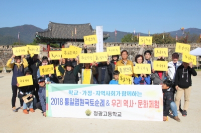 [충청뉴스큐] 정광고등학교와 백두대간수업연구회가 지난 20일부터 1박2일간 ‘2018 학교-가정-지역사회가 함께하는 통일염원국토순례 & 우리 역사·문화 체험활동’을 운영했다.