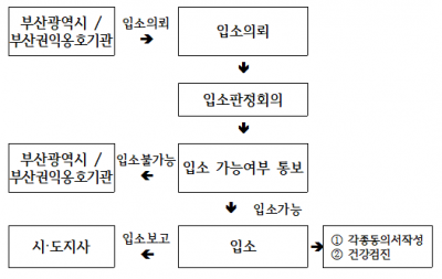 학대피해 장애인이 발생하면 부산시장애인권익옹호기관 또는 경찰서에서 현장조사를 통해 보호가 필요하다고 판단할 경우, 쉼터 입소 의뢰가 가능하다.