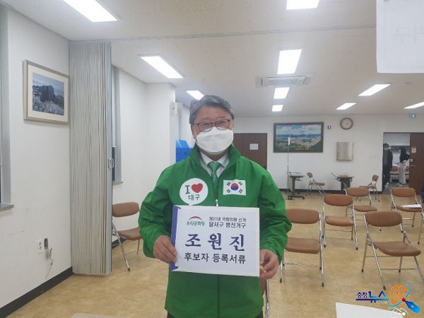 우리공화당 대표인 조원진 의원(대구 달서구병)은 26일 오후 3시 달서구선거관리위원회에 21대 총선 대구시 달서구병 선거구 우리공화당 국회의원 후보로 등록했다. 조 의원은 후보등록 후 곧바로 달서시장을 방문하여 코로나19(중국폐렴)로 힘들어하시는 상인분들과 시민분들을 위로하고 성원을 당부했다. 조 의원은 이번 21대 총선의 의미와 관련해서 “무능하고 위선적이고 독선적인 문재인 정권에게 대구시민의 위대한 힘을 보여주고 잘못된 정책을 바로잡기 위해서는 보수우파를 대통합할 수 있는 용기있고 정의로운 정치인이 필요하다”면서 “조원진의 압승이 보수우파의 외연을 확장하고 진정한 보수대통합으로 가는 길”이라고 말했다. 또한, 타후보와의 경쟁력에 대해서도 “조원진은 12년간 한결같은 마음으로 12년의 설득과 투쟁으로 대구시 신청사를 옛 두류정수장 부지에 유치했다”면서 “한결같은 달서사랑과 정책으로 달서구의 눈부신 발전을 이루겠다”고 포부를 밝혔다. 한편, 조 의원은 이번 총선에서 달서구를 위한 7대 공약으로 ▲행정복합중심도시 달서 ▲4차산업중심 창조도시 달서 ▲공연문화산업 중심도시 달서 ▲세계적인 건강복지 중심도시 달서 ▲아이중심, 교육중심도시 달서 ▲서민과 사회적 약자가 행복한 달서 ▲사통팔달 교통중심도시 달서를 제시했다. 조 의원은 “지난 2018년, 2019년 NGO 모니터단에서 선정한 국리민복상(우수국회의원)을 2년 연속 수상하는 등 국회와 중앙에서 능력을 검증받았다”면서 “반드시 이번 총선에서 압승해서 의리있고 정의있는 대구, 힘있는 달서구를 꼭 만들겠다”고 말했다.