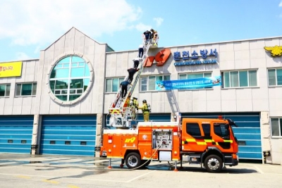 경형사다리차는 시연에서 현장 도착·방수 후 3층 요구조자 3명을 연속해 사다리활용 탈출시키고 무의식 요구조자 1명을 구조대원들이 바스켓을 이용 신속 구조했다.