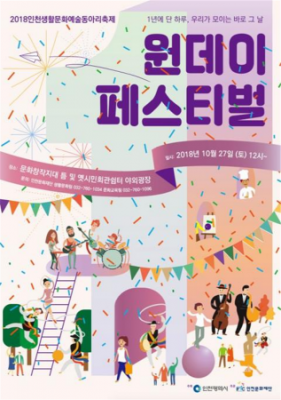 [충청뉴스큐] 인천광역시는 오는 27일 주안 옛 시민회관 쉼터 야외광장과 문화창작지대 틈에서 인천지역 생활문화동아리 62개팀 500여명이 참석하는 생활문화예술동아리 축제 ‘원데이페스티벌’을 개최한다.