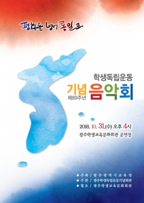 [충청뉴스큐] 광주학생독립운동기념회관이 오는 31일 오후4시 광주학생교육문화회관 공연장에서 ‘학생독립운동, 평화를 넘어 통일로’를 주제로 ‘제5회 학생독립운동 89주년 기념음악회’를 개최한다.