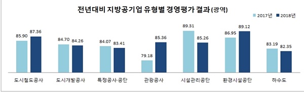 최상위 등급인 ‘가’ 등급에는 광주도시철도공사, 충북개발공사, 평택도시공사, 부천도시공사, 인천서구시설관리공단, 부산환경공단, 김해도시개발공사, 광양하수도 등 총 13개 기관이 선정됐다.