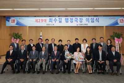[충청뉴스큐] 강원도교육청은 24일 오전 11시, 2층 대회의실에서 직원들이 참석한 가운데 최수길 행정국장 이임식을 진행했다.