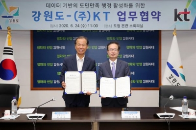 [충청뉴스큐] 강원도와 KT는 24일 강원도청에서 ‘빅데이터 기반의 도민만족 행정 활성화를 위한 업무협약’을 체결했다고 밝혔다.