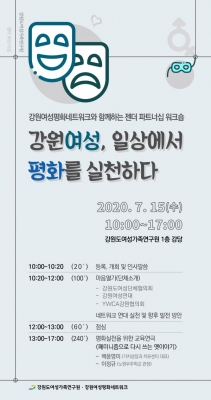 [충청뉴스큐] 강원도여성가족연구원과 강원여성평화네트워크는 오는 7월 15일 오전 10시부터 여성가족연구원 강당에서 “강원여성, 일상에서 평화를 실천하다”라는 주제로‘젠더파트너십워크숍’을 개최한다.