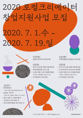 모집분야는 ‘2020년 로컬크리에이터 창업 지원사업’과 ‘2020년 지역맞춤형 청년창업 공간재생 지원사업’이다.
