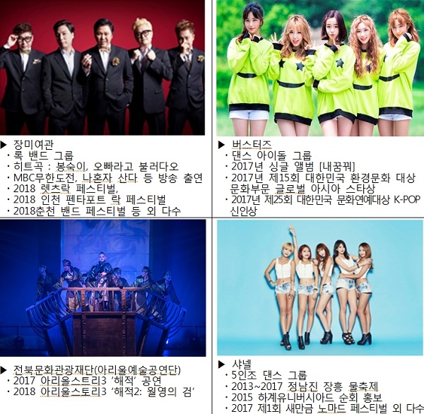 8월 18일 밤에 열리는 세계음악공연에서는 인기 록밴드 ‘장미여관’과 걸 그룹 ‘버스터즈’, 팝페라 그룹 ‘더 드림 싱어즈’, 아프리카 타악 그룹인 ‘아냐포’가 뜨거운 무대로 감동과 희열을 선사할 예정이다.