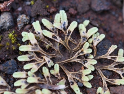 돌밭둥근이끼는 엽상체 선태식물로 임도 또는 밭 주변의 그늘지고 습한 흙 위에 생육한다.