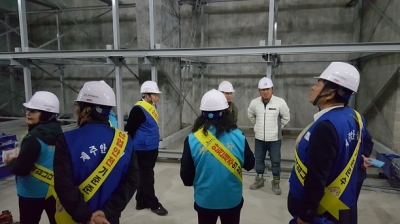 이번 안전점검의 날에는 도, 보건안전공사, 시공사, 근로자, 민간단체 등 50여명이 오피스텔 신축 공사 현장에 모여 안전 사고 예방을 위한 다짐을 하고 현장 안전 교육을 실시했다.