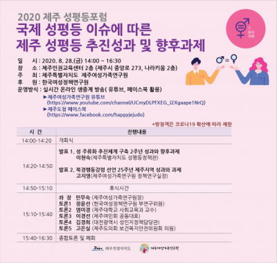 여성가족연구원 유튜브 및 제주도청 페이스북에서 온라인 생중계된다.