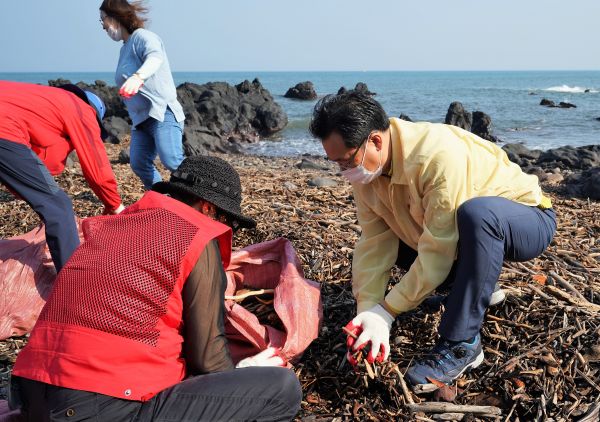 현장점검 후 해안쓰레기 수거에 참여한 고영권 정무부지사는 “신속한 피해복구를 위해 지난해 효과를 낸 긴급농가지원대책 등을 바로 적용할 수 있는지 우선 검토하고 있다”며 “피해 복구 과정에서 2차 사고가 발생하지 않도록 안전조치도 철저히 마련해 달라”고 당부했다.