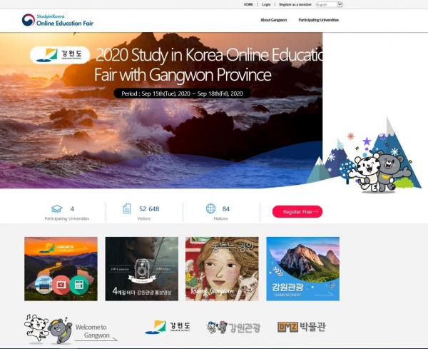 한국유학종합시스템을 통해 이루어지는 이번 유학설명회는 온라인 채팅상담·대학별 실시간 설명회·기관미팅과 더불어 강원도의 매력을 소개할 수 있는 컨텐츠로 구성됐으며 현재까지 사전등록자는 70개 국가의 2천명 이상, 온라인 설명회 웹페이지 방문자수가 5만 이상을 기록하며 흥행을 예고하고 있다.