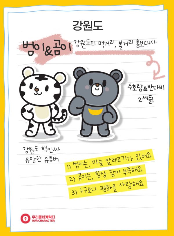 [충청뉴스큐] 강원도 캐릭터인 범이&곰이가 우리동네 캐릭터 스타 선발 대회인 ‘우리동네 캐림픽’에 첫 참가해 본선에 진출하는 쾌거를 이루었다.
