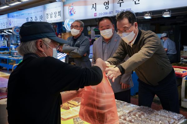 고영권 부지사는 이날 동문시장 내 점포들을 둘러보며 코로나 사태 장기화로 인해 어려움을 겪고 있는 상인들을 만나 애로사항을 청취하고 격려했다.