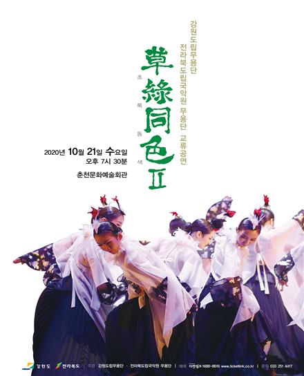 [충청뉴스큐] 강원도립예술단에서는 국·공립 예술단체와 함께하는 교류사업의 일환으로 코로나로 지친 도민을 위로하기 위해 오는 10월 21일 오후 7시 30분 춘천문화예술회관에서 전북도립국악원 무용단과 함께 교류공연 ‘초록동색’을 무대에 올린다.