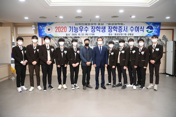 [충청뉴스큐] 음성장학회는 기능경기대회에 참가해 수상한 학생들을 기능 우수 장학생으로 선발해 지난 22일 군청 2층 상황실에서 장학증서 수여식을 개최했다고 밝혔다.