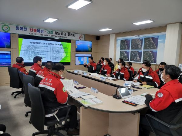 [충청뉴스큐] 강원도동해안산불방지센터는 2020년 10. 27. 오후 2시 상황대응실에서 박용식 녹색국장 등 동해안 6개시군 산불관계관 16여명이 참석한 가운데‘동해안 산불예방·진화 발전방안 토론회’를 개최했다.